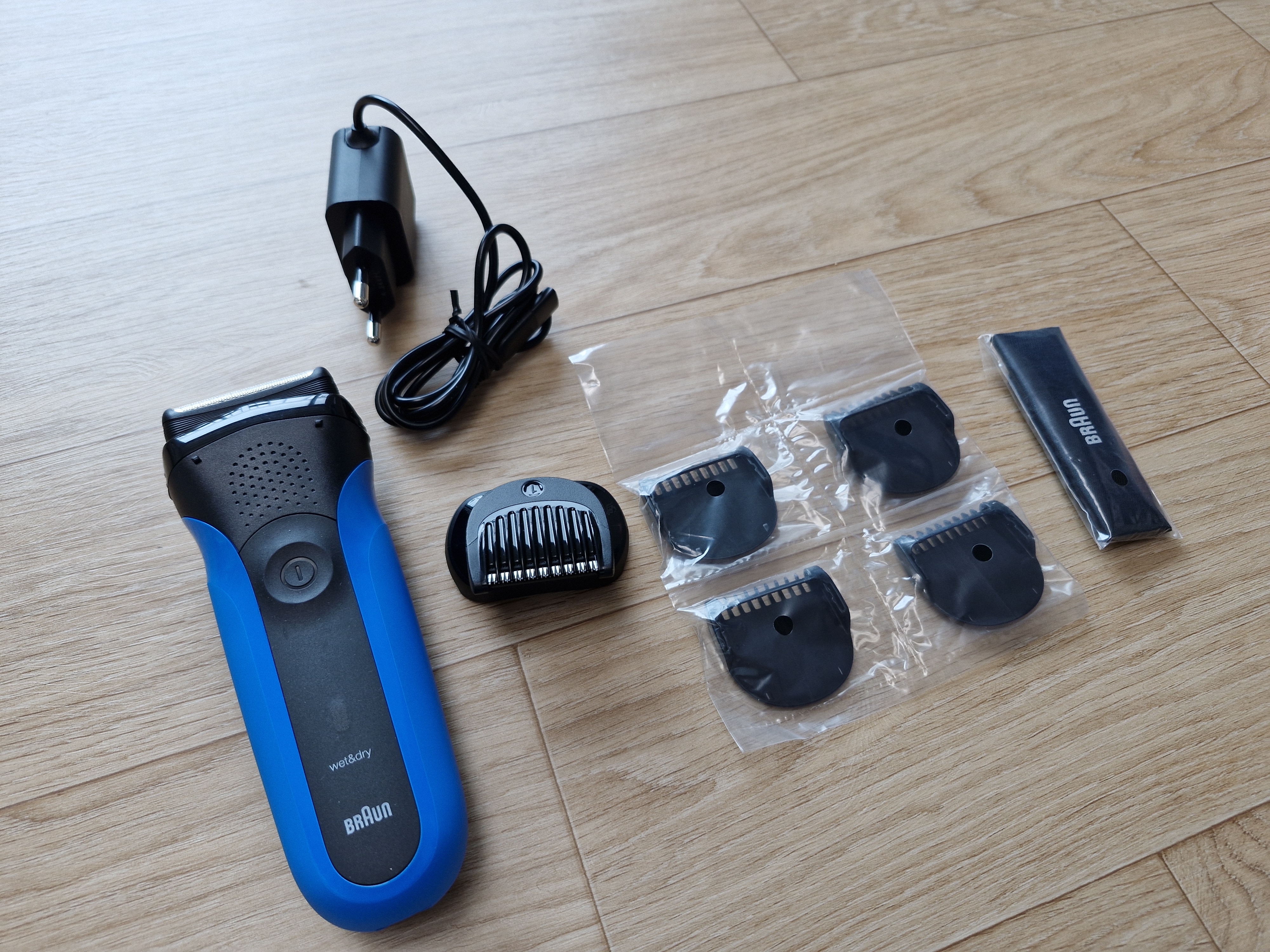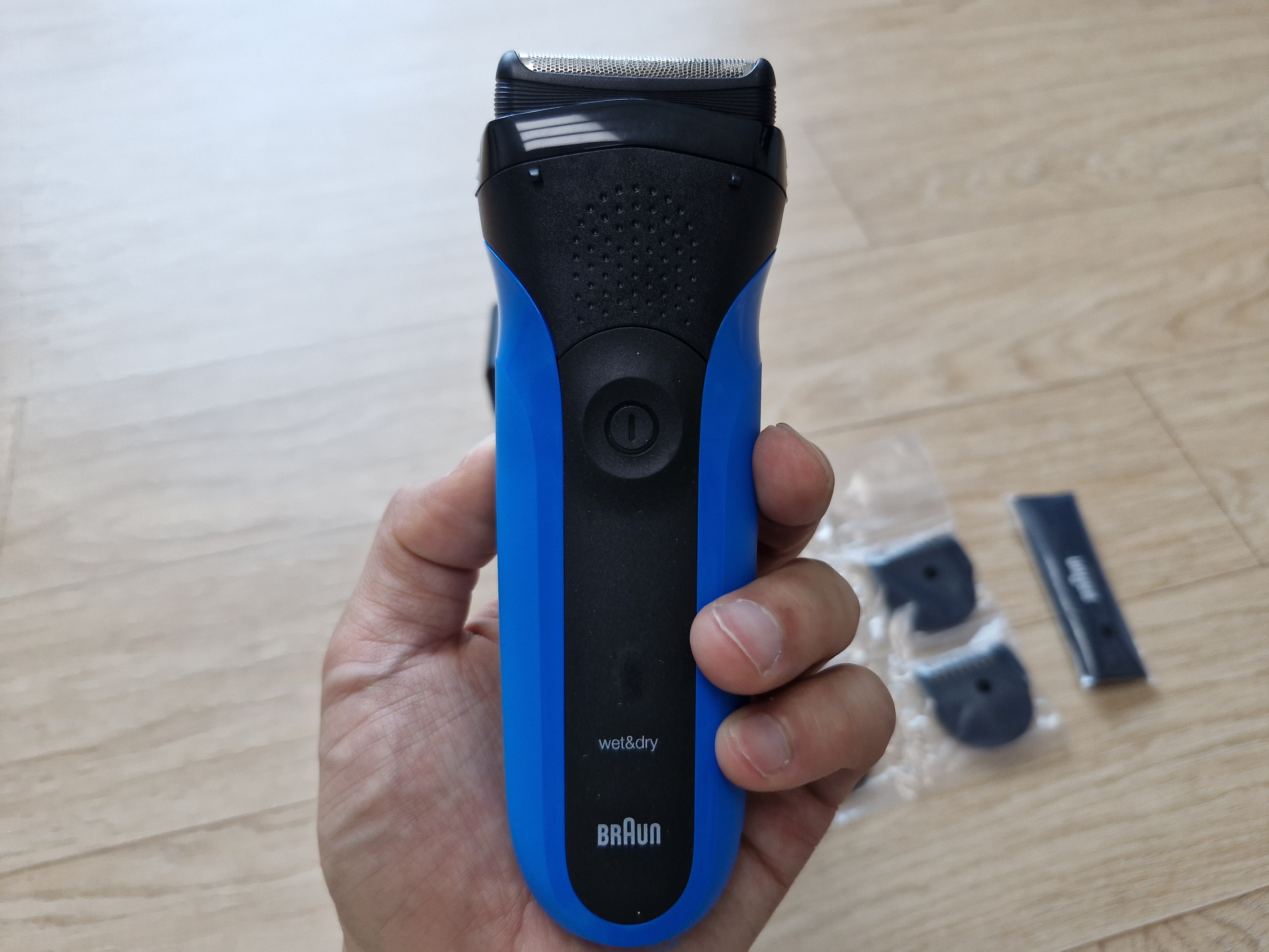 박스 개봉했을 때 구성품은 심플했지만 필요한 건 다 들어있었어요. 본체, 트리머, 보호캡까지! 블루 컬러가 생각보다 훨씬 세련되고 깔끔해서 첫인상부터 마음에 쏙 들었답니다. 충전 후 바로 사용할 수 있어서 귀찮은 세팅 과정도 없었고요.