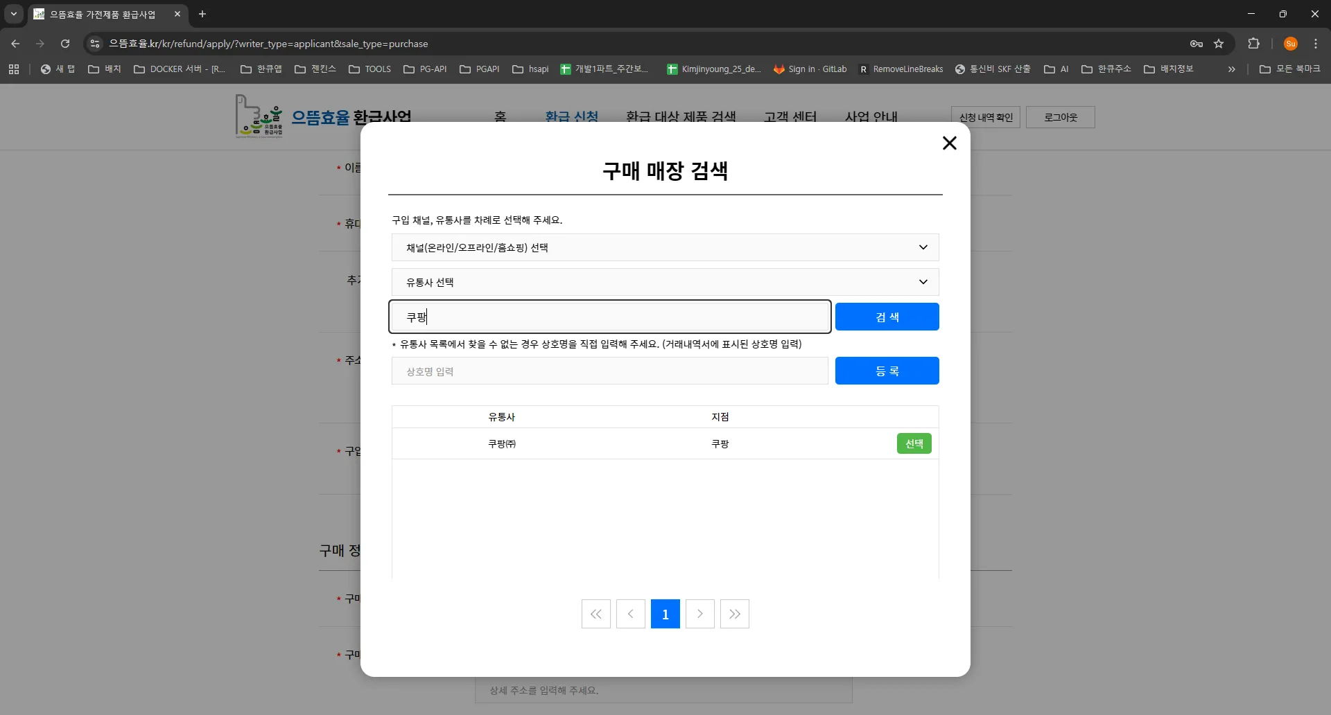 으뜸효율 가전 환급사업의 대상 제품은 총 11개 품목이에요. 크게 대형 가전, 중소형 가전, 영상기기로 구분할 수 있어요. 대형 가전으로는 냉장고, 김치냉장고, 에어컨, 세탁기, 의류건조기가 포함되어 있고, 중소형 가전으로는 전기밥솥, 유선진공청소기, 공기청정기, 제습기, 식기세척기가 있어요. 영상기기로는 TV가 유일하게 포함되어 있어요. 저는 쿠팡에서 구입하였기 때문에 유통사는 쿠팡을 검색해서 선택 하였습니다.